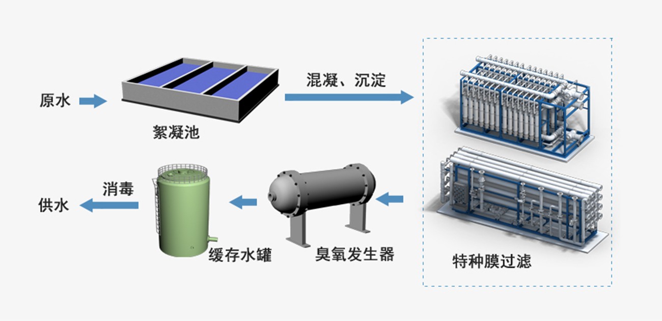采用以分离膜为核心的集成技术,替代传统沉淀+过滤+臭氧活性炭等较粗处理工艺,100%去除市政给水中的藻类、微生物、细菌、大肠杆菌,大幅降低杀菌剂用量,保障饮用水安全。该技术出水水质稳定,且不受原水水质波动的影响;工艺流程短,占地面积小(比传统工艺减少½—⅓);使用寿命长,产水率高;是市政给水管理的发展方向。